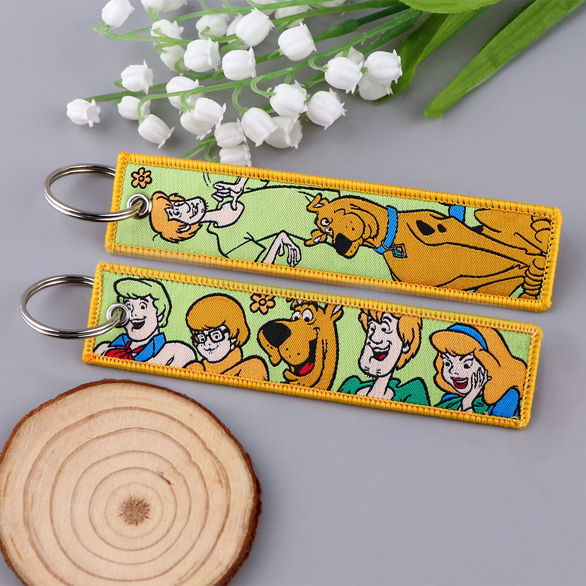 - Nostalgic Designs: Celebrate your favorite cartoon characters with beautifully embroidered artwork that stands out. Keychains include themes like the Scooby-Doo gang, retro robots, humorous stick figures, and action-packed dinosaurs and warriors.